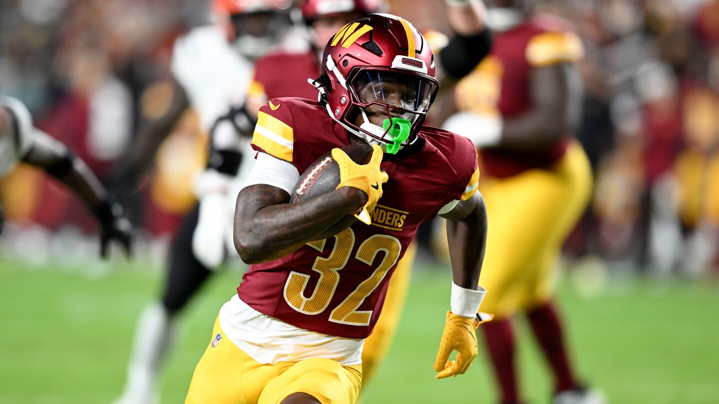 Jacorey Croskey-Merritt has been the talk of the town during Commanders camp. His ascent has been so sudden and undeniable that Washington is now looking to trade Brian Robinson. The veteran was held out of Washington’s second preseason outing, giving “Bill” a showcase game. He didn’t disappoint with an 11/46/1 rushing line and two catches. JCM is the Commanders’ starting running back this year.