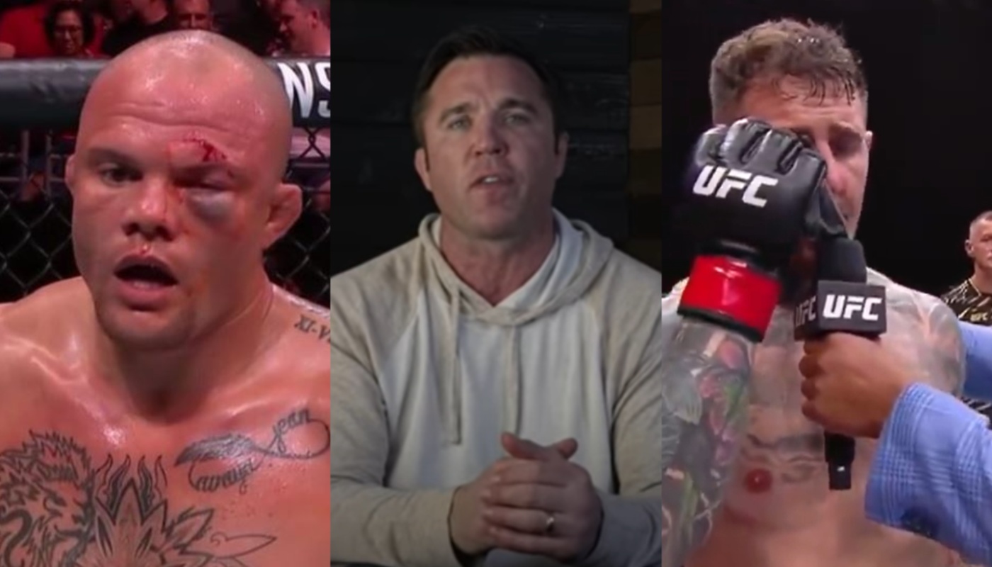 “Being poked in the eye is illegal Brendan, but to fight with one eye is very common. The opponent is trying to hit your eye; he’s trying to bust you up and make your nose bleed. So that part of it, it does have a question mark for guys like Anthony and I,” Chael Sonnen said. “We are trying to be polite. We are trying to show grace, but in all fairness, you’re the heavyweight champion of the world. You’ve got to fight with one eye at times.”