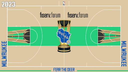 I wanted to highlight two teams’ court designs: one for an immense improvement and one for a horrific devolution. Let’s start with the positive. The transformation of the Bucks’ NBA Cup court has been what the kids are calling a glow-up. It went from a gross cream-and-lime-green color combination to a blue abomination to now a really good green motif.