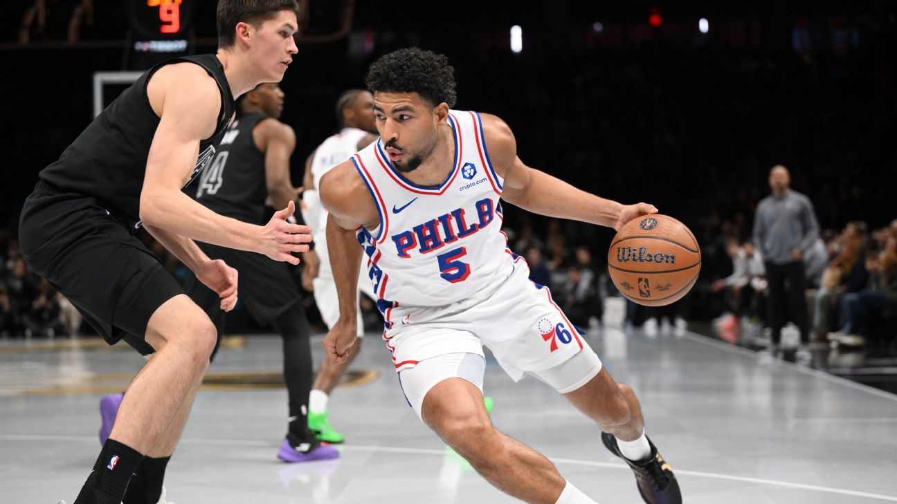Quentin Grimes, SG, Philadelphia 76ers (44.5%): Grimes gets starter minutes for the 76ers, whether he starts or not. Joel Embiid and Paul George are in and out of the lineup; Embiid out tonight while George will presumably play after sitting yesterday, but Grimes tends to be effective regardless. In his last three games, Grimes has averaged 19.7 PPG, 6.3 APG and 6.0 RPG.