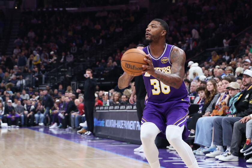 Lakers guard Marcus Smart has been fined $35,000 for making an obscene gesture toward a game official during halftime of the game Thursday against the Utah Jazz, the NBA announced Saturday.