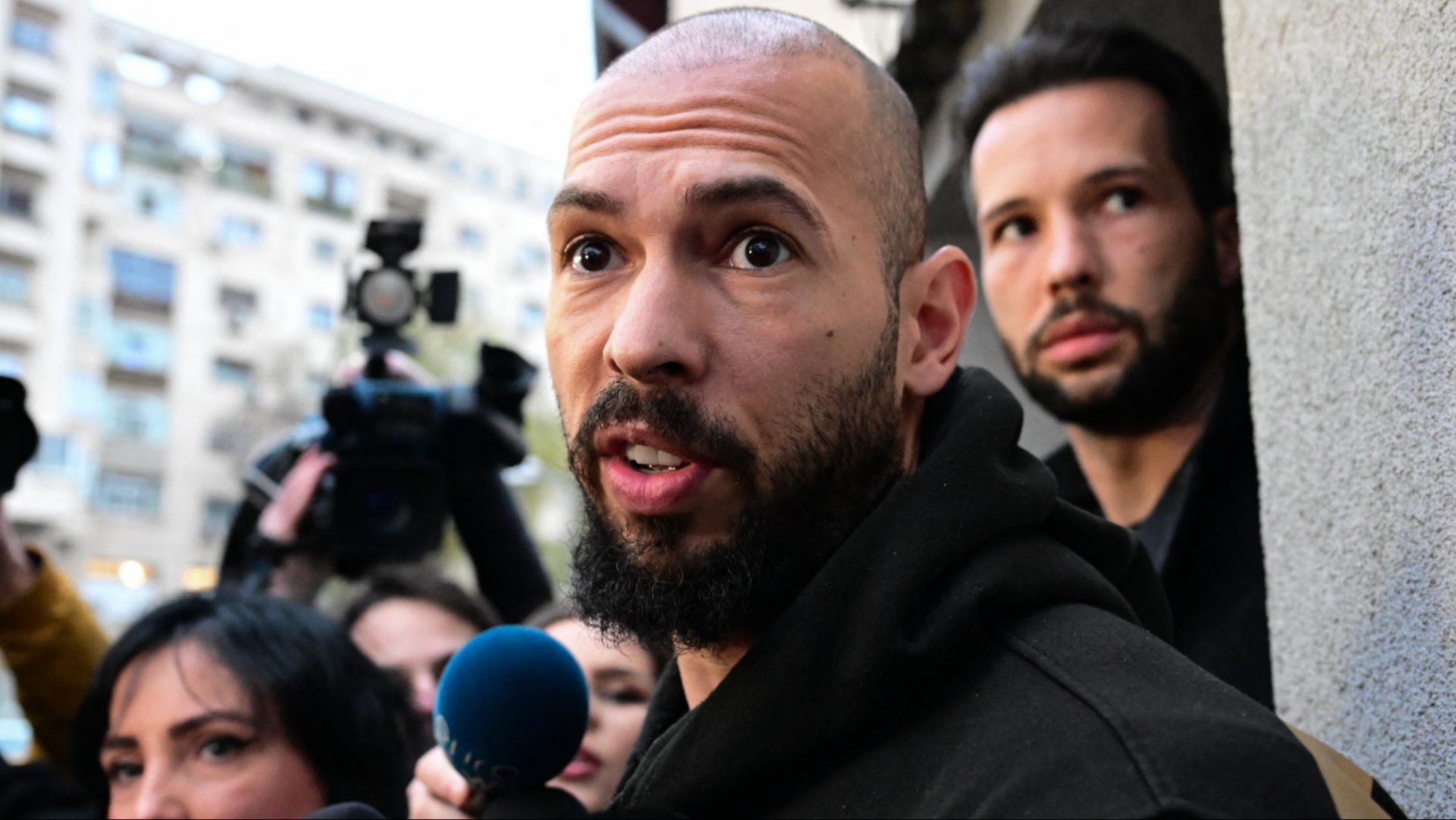 Andrew Tate speaks with media