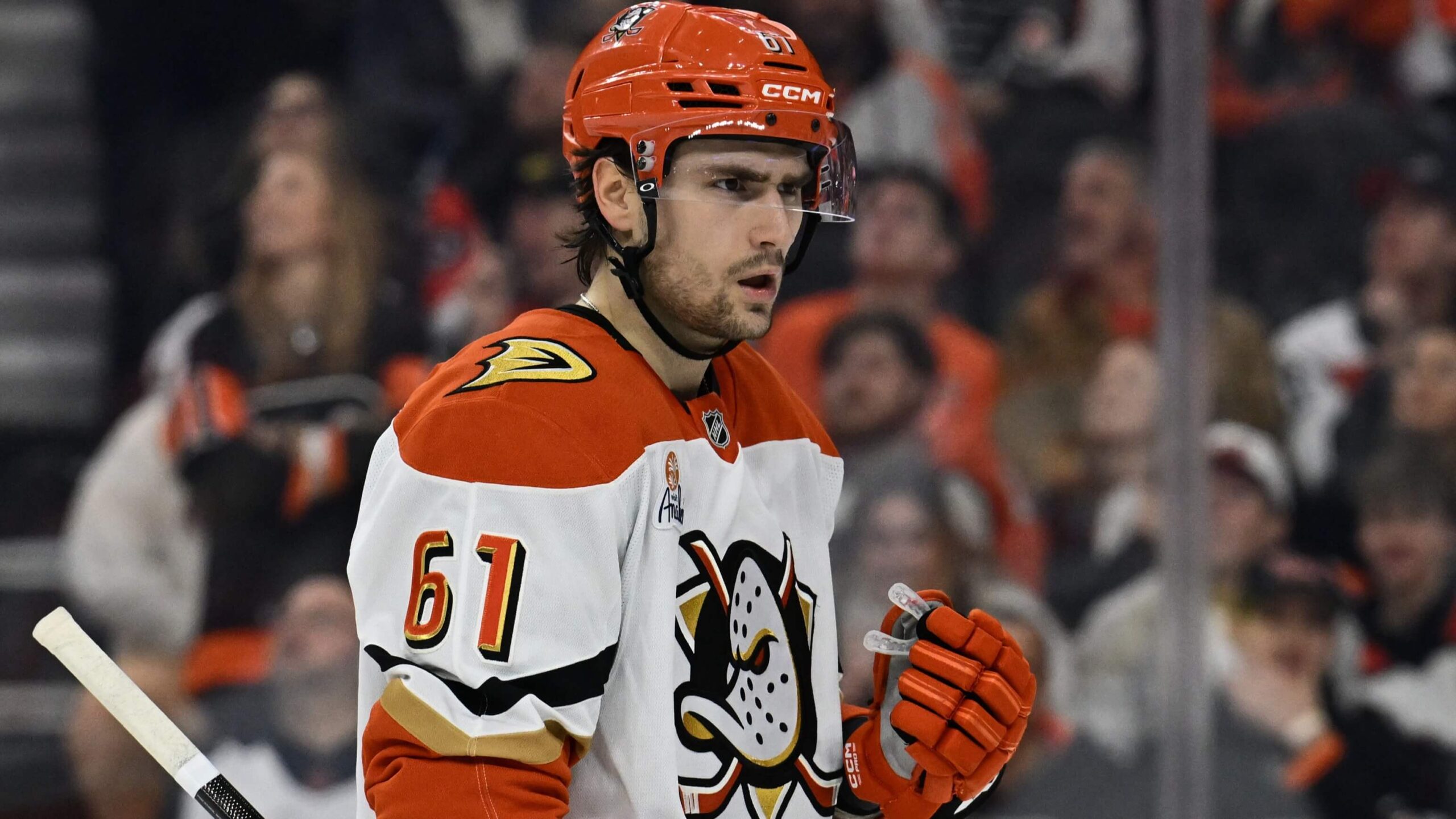 Photo By – Reuters Connect. Anaheim Ducks left wing Cutter Gauthier (61) in NHL action.