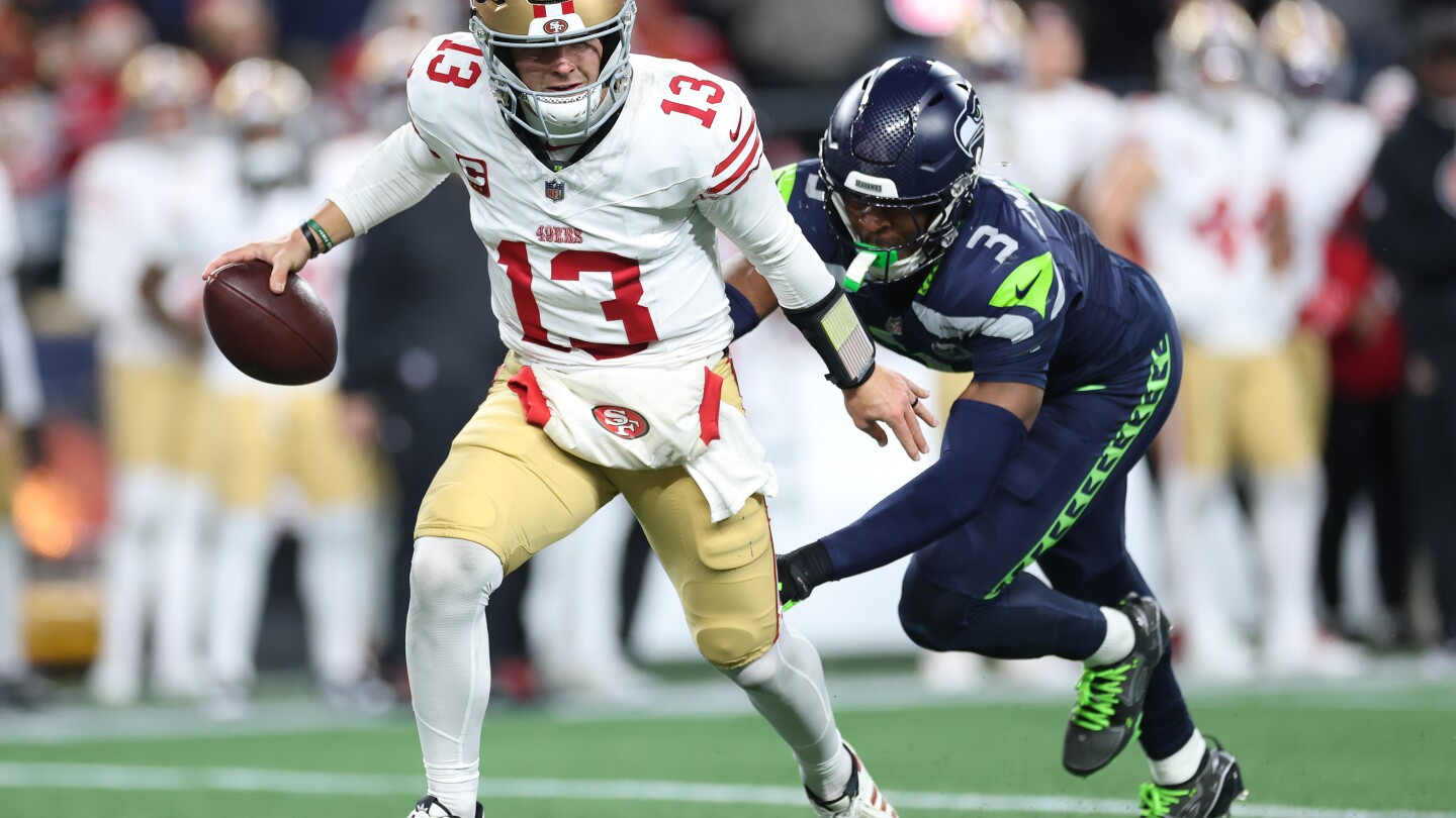49ers quarterback Brock Purdy threw two touchdown passes and four interceptions against the Seahawks; he threw 18 touchdown passes and six interceptions against all other teams.