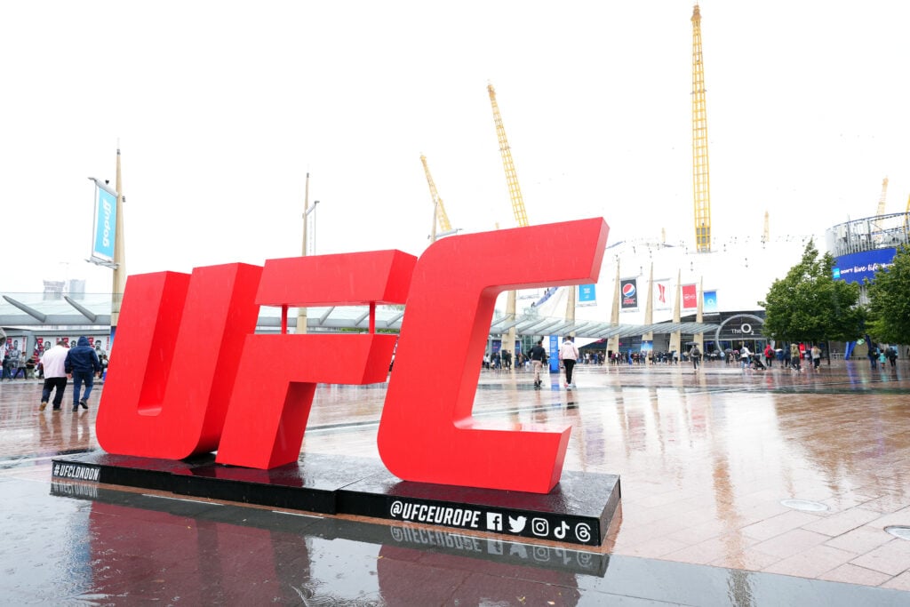 The UFC sign outside of The O2 ahead of a UFC Fight Night event in London